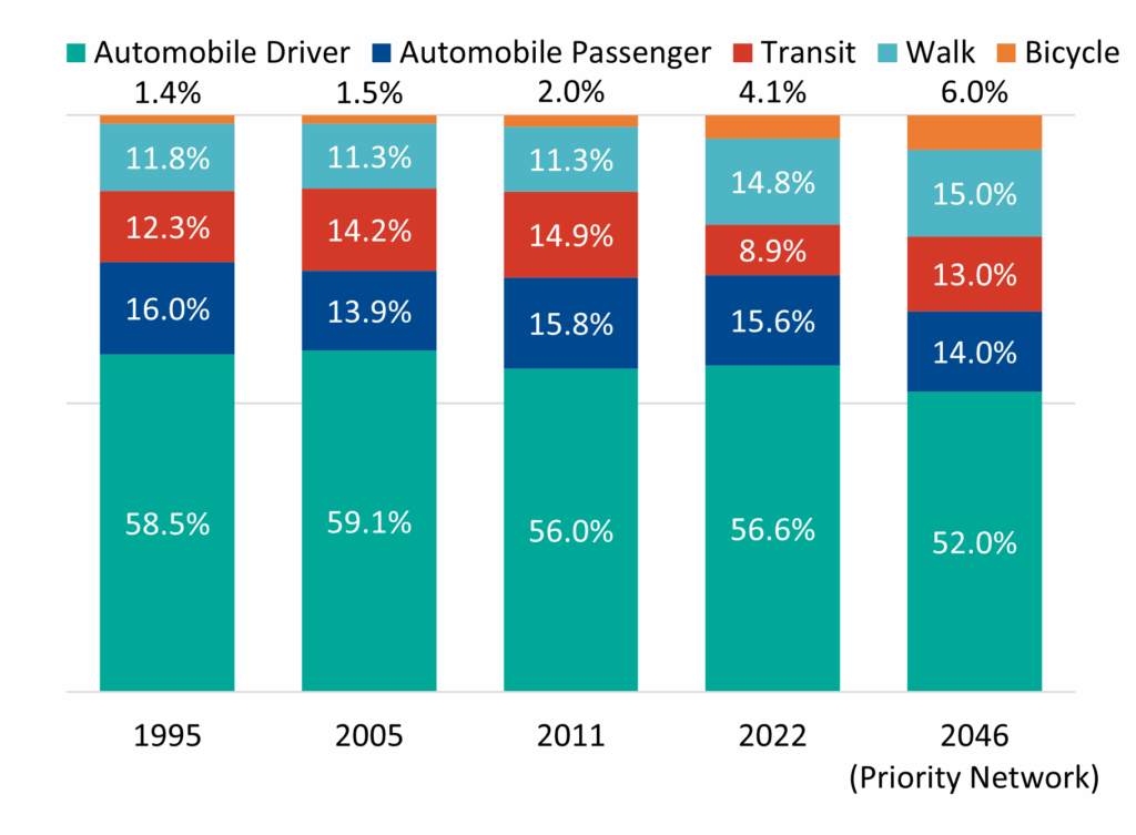 Weekday Mode Share Over Time (1995–2046)