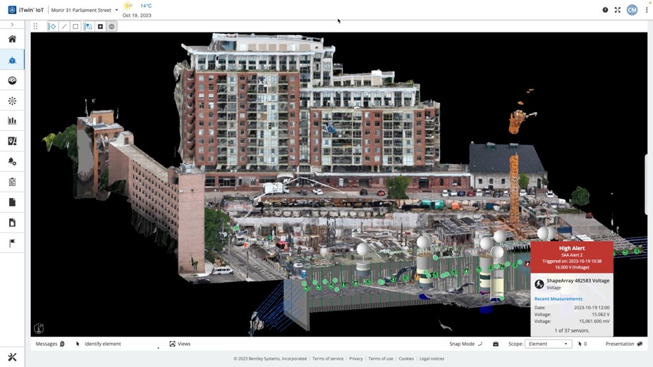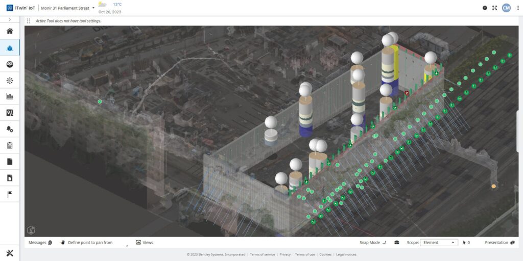 Toutes ces données ont été transmises au logiciel iTwin IoT de Bentley, où elles ont été intégrées à un jumeau numérique en direct du site. Mais iTwin IoT a fait plus que simplement consolider les données : il les a transformées en informations exploitables. Des alertes en temps réel ont averti les ingénieurs dès que les mesures ont dépassé les seuils prédéfinis, tandis que des tableaux de bord personnalisés ont permis aux chefs de projet d’avoir un aperçu rapide de l’état du site.